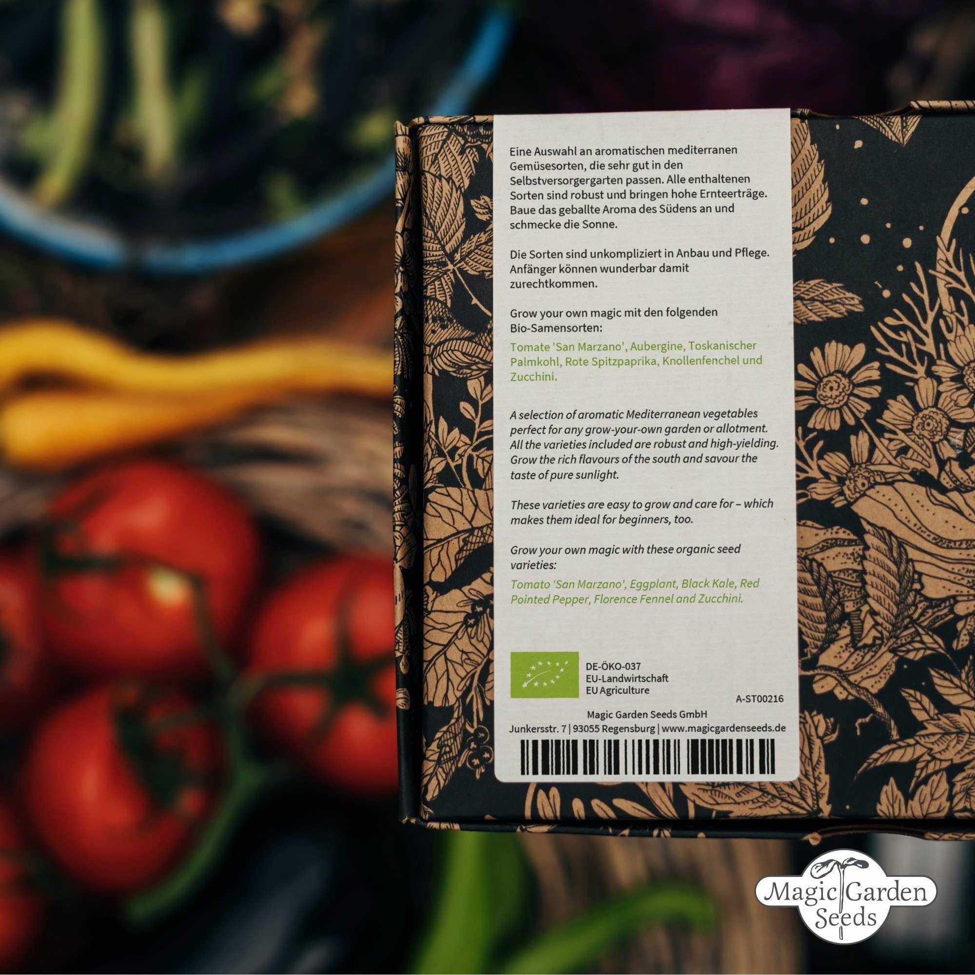 V tomto krásném dárkovém balení najdete šest středomořských druhů zeleniny v bio kvalitě, které přinesou vůně jihu do Vaší zahrady i na Váš talíř. Všechny odrůdy jsou velmi robustní a poskytují vysoké výnosy, takže se můžete zásobovat dostatkem vlastní zeleniny.