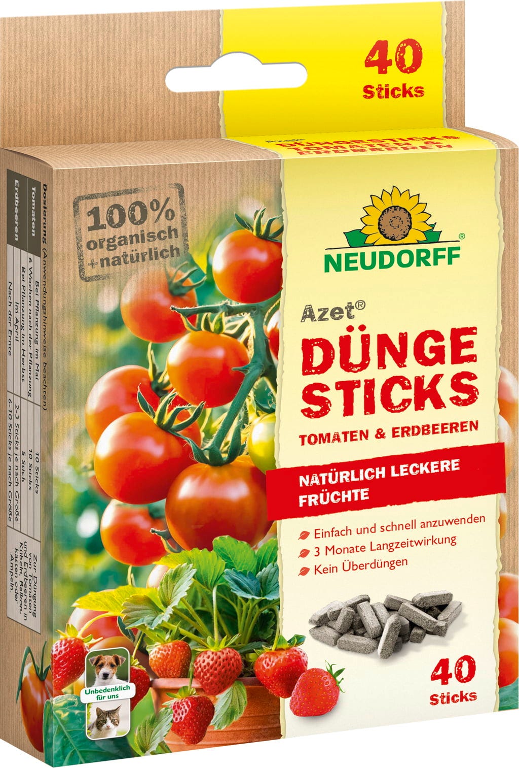 Neudorff Azet hnojivé tyčinky pro rajčata a jahody, 40 ks
