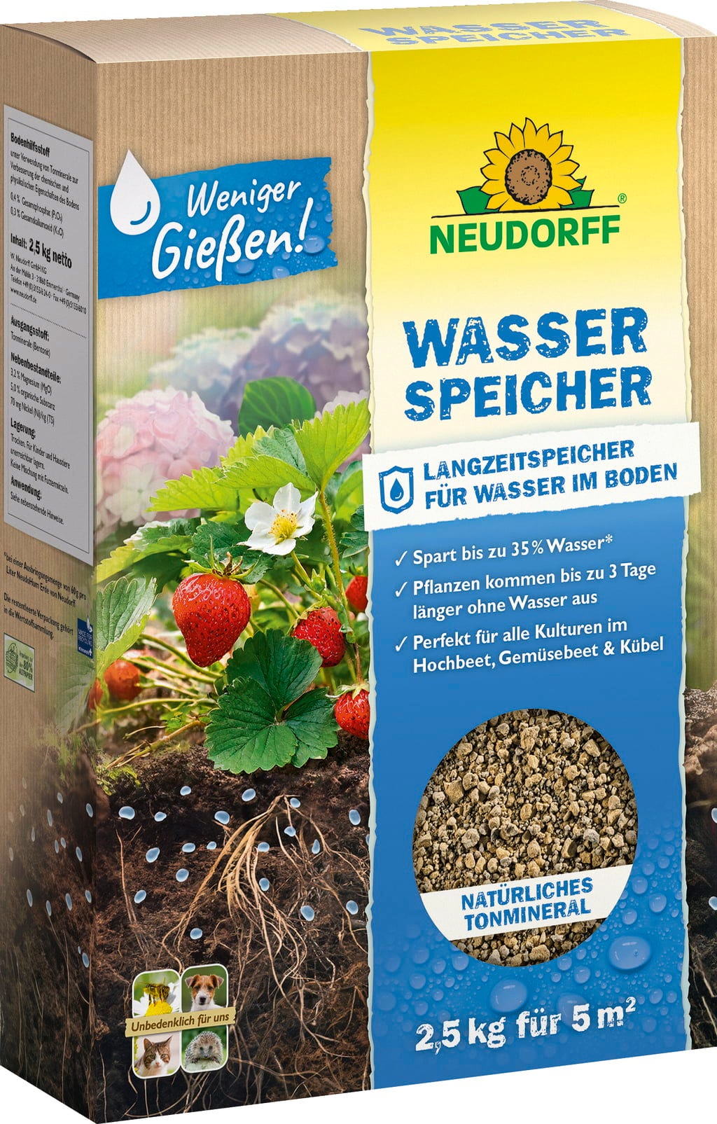 Chraňte Vaše rostliny před stresem ze sucha a snižte potřebu zalévání se zásobníkem vody z přírodních jílových minerálů! Tento speciální zásobník vody uchovává v půdě až o 35 % více vody, což přináší skutečnou úlevu zejména v horkých letních dnech - včetně bohaté sklizně a mnoha květů.