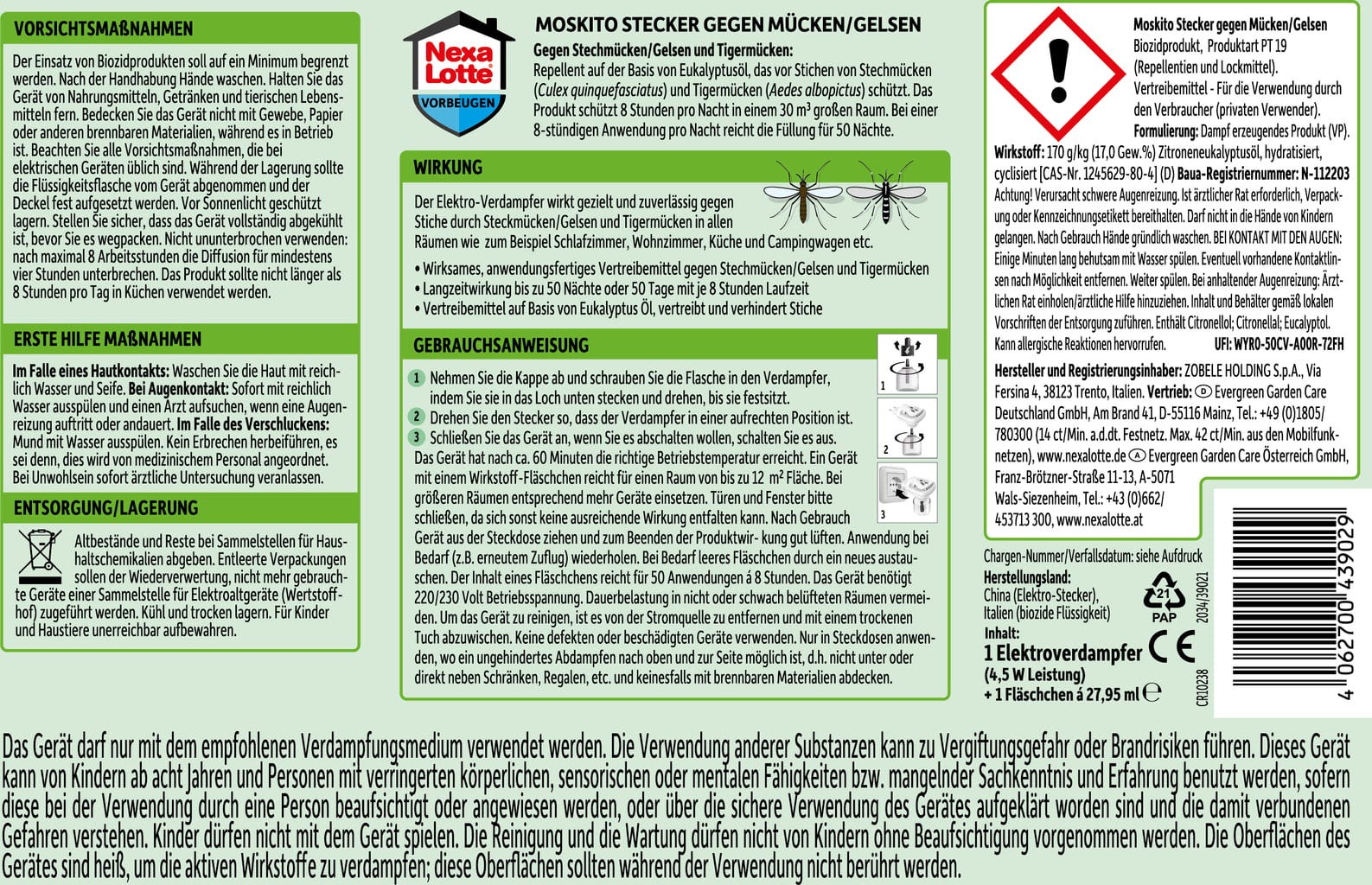 NexaLotte Elektrický odpuzovač hmyzu (1 přístroj + náhradní náplň)