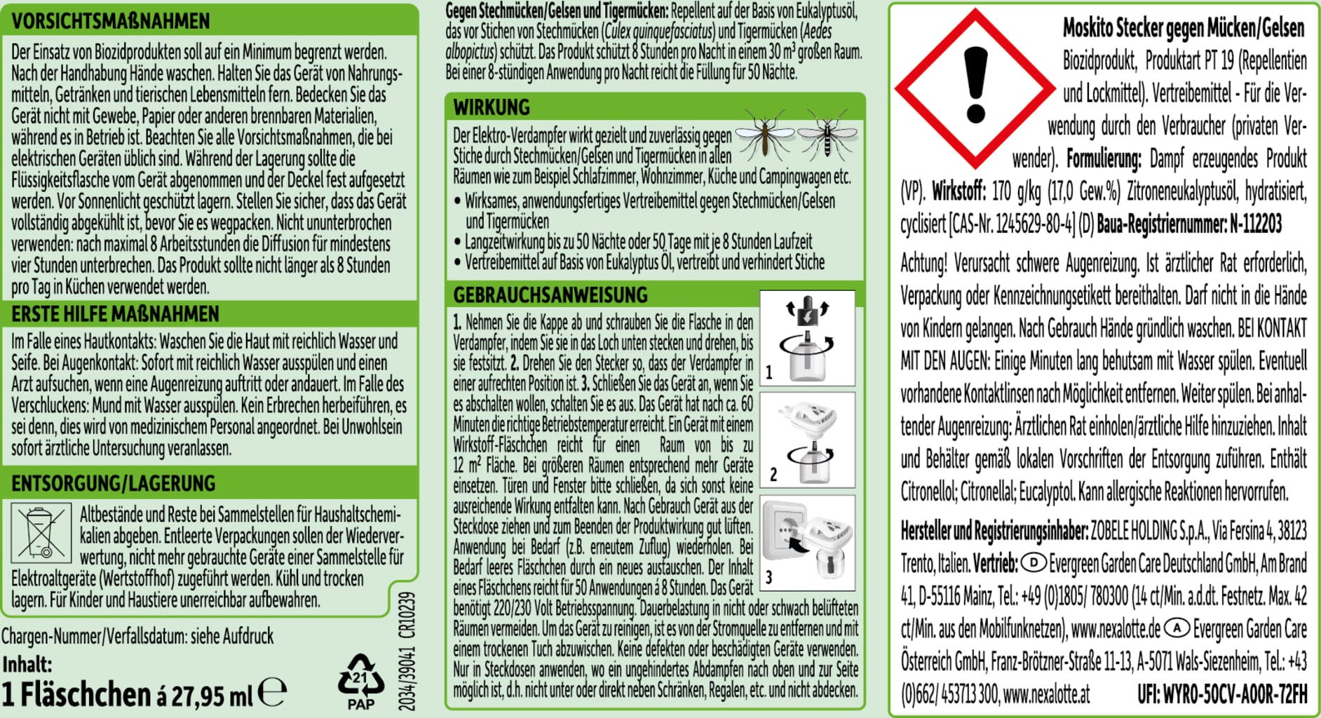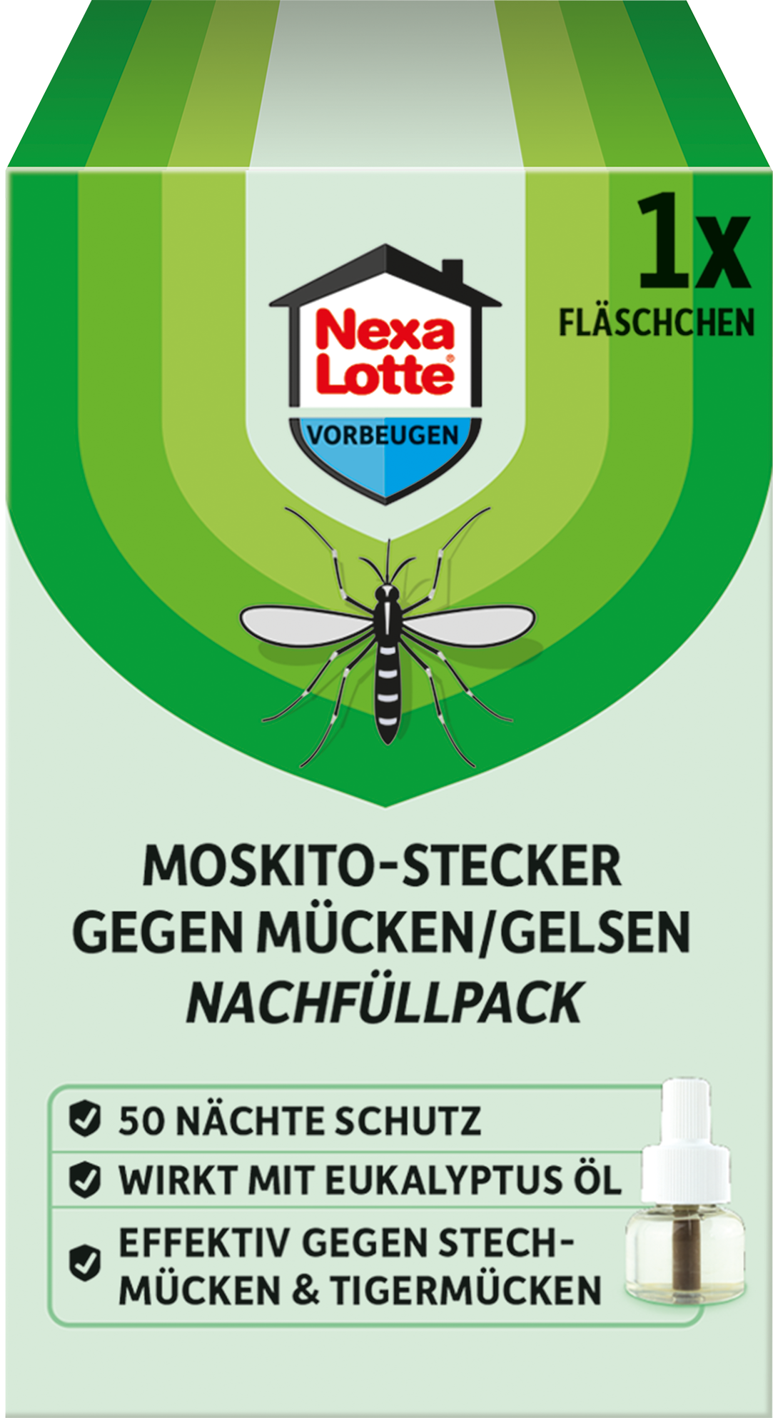 Vhodná náplň pro Váš osvědčený elektrický odpuzovač proti komárům Nexa Lotte zajišťuje dlouhodobou ochranu před komáry a komáry tygrovanými. Ideální pro všechny obytné prostory, ať už ložnici, obývací pokoj nebo dětský pokoj. Jednoduše vyměňte prázdnou lahvičku za novou, zapojte odpuzovač a odpočívejte.