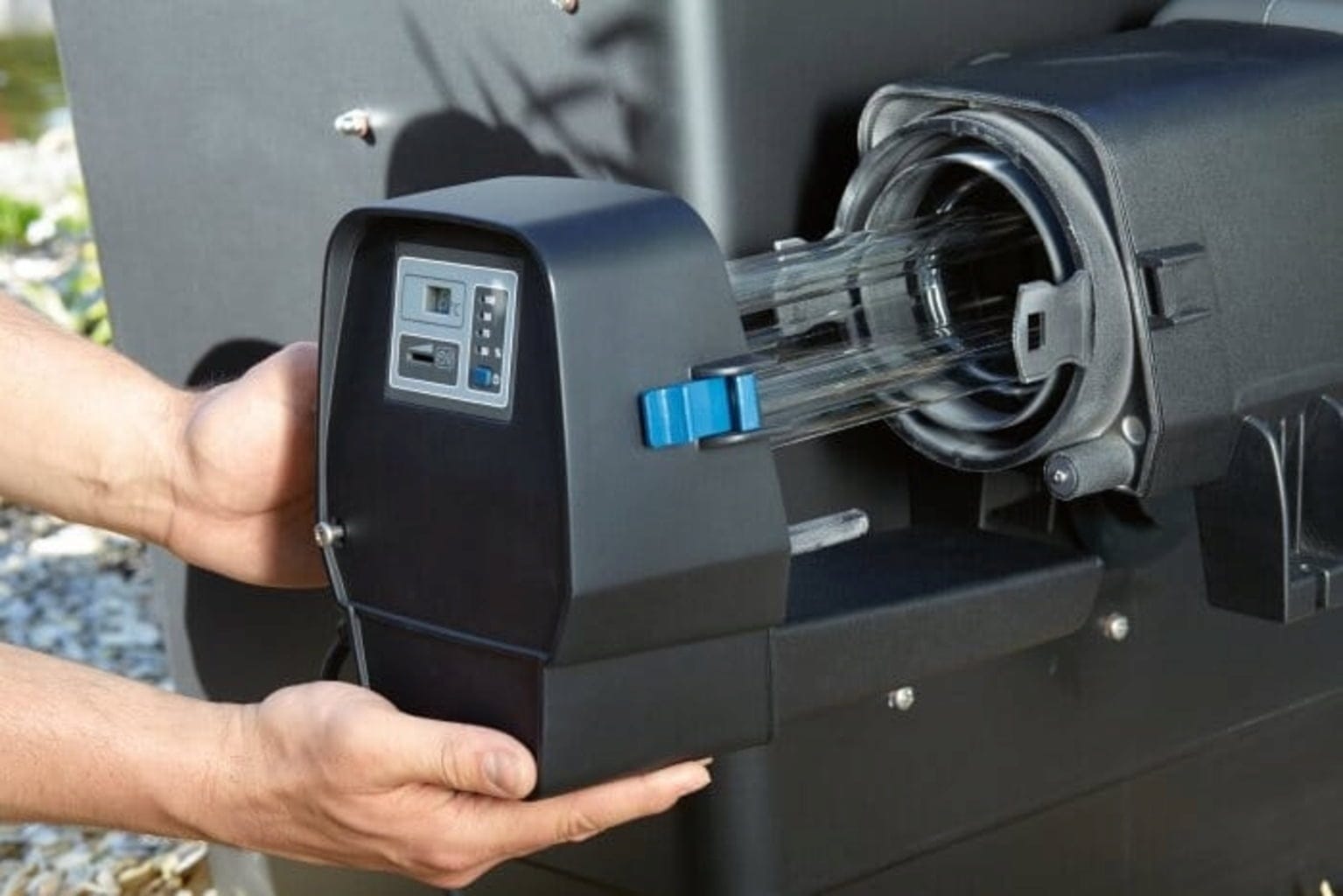 Skvělé je, že je nejen účinné, ale také docela chytré. Zatímco integrovaná obtoková membrána automaticky reguluje distribuci vody na základě průtoku vody, zařízení se, díky systému Seasonal Flow Control automaticky přizpůsobuje ročním obdobím. V létě, kdy řasy kvetou, poskytuje více energie a v zimě, kdy je vše klidnější, snižuje výkon. Tím ušetříte až 50 % energie – to je dobré pro Vaši peněženku i pro životní prostředí. A nebojte se, pokud nejste technický profesionál: instalace je velmi snadná a zařízení Vám přesně ukáže, kdy je třeba vyměnit lampu. Můžete také odečíst teplotu vody a provést individuální úpravy výkonu!