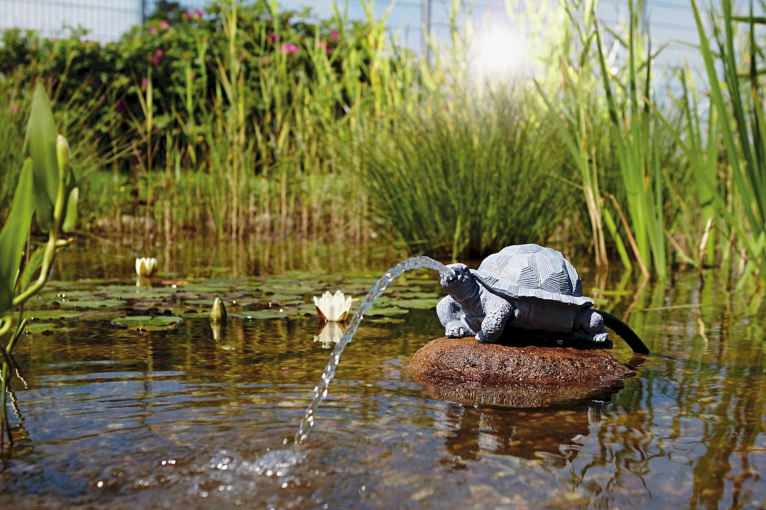 Tato rozkošná želva upoutá pozornost nejenom v krajině Vašeho jezírka! Figurka chrliče je vyrobena z polyresinu odolného vůči povětrnostním vlivům a umožňuje cirkulaci vody ve Vašem jezírku, takže voda je zásobována dalším kyslíkem – to udělá obyvatelům Vašeho jezírka obzvlášť radost.