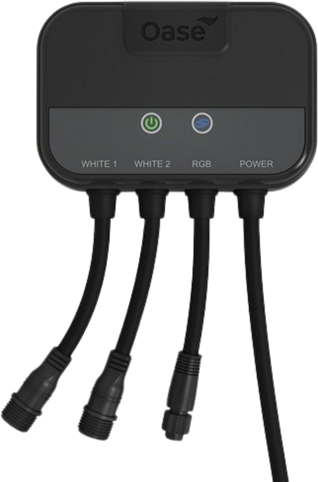 Tento praktický ovladač lze spárovat s aplikací Oase Switch, takže můžete chytře ovládat všechna světla ze série LunAqua Connect od Oase! Má dva výstupy pro bílá světla a jeden pro RGB světla, což Vám umožní snadno ovládat Vaše světelné zdroje, a dokonale tak prezentovat keře, stromy, budovy nebo jezírko.
