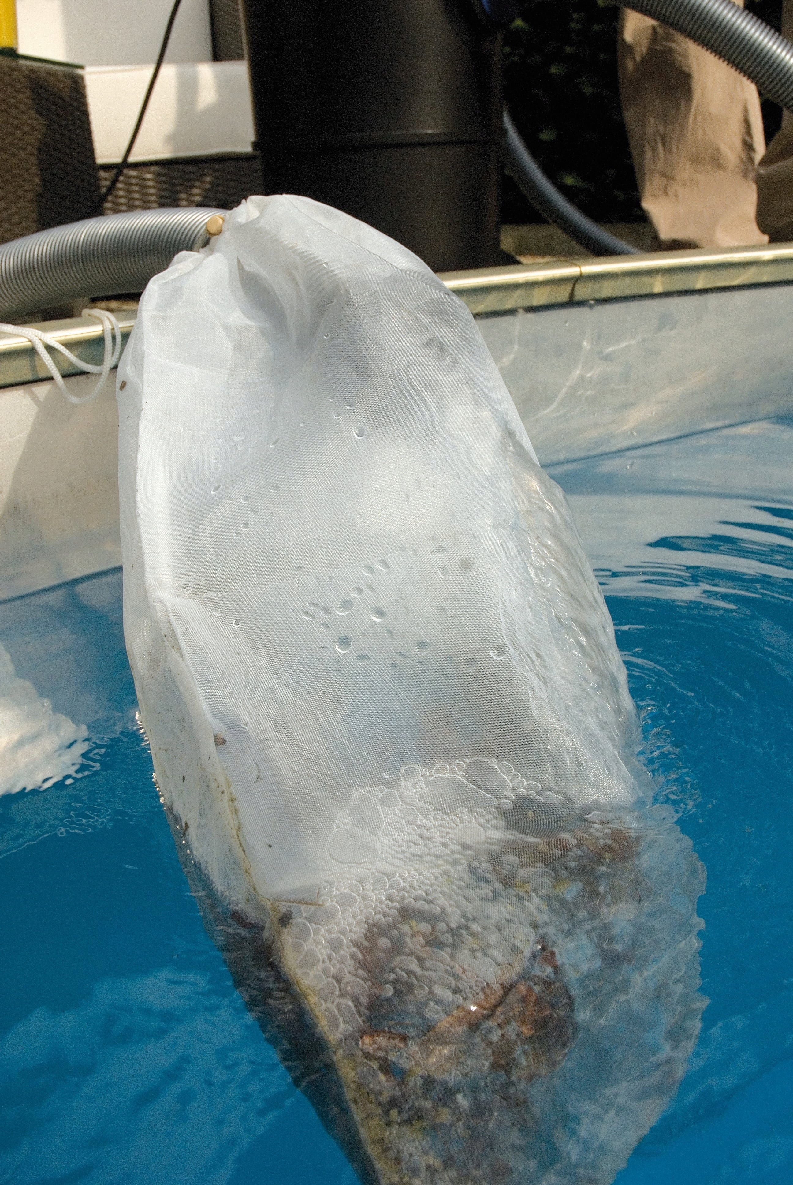 Dvoukomorový systém využívá dva stejně velké válce, které střídavě zajišťují nasávání a vypouštění vody – a to současně, bez přerušení výkonu. Pokud chcete vyčištěnou vodu vrátit zpět do jezírka, zachytí filtrační vak všechny větší nečistoty (> 1 mm). Sada trysek obsahuje: trysku pro mokré sání, univerzální trysku, speciální trysku na vláknité řasy, plošnou trysku a kartáčovou trysku.