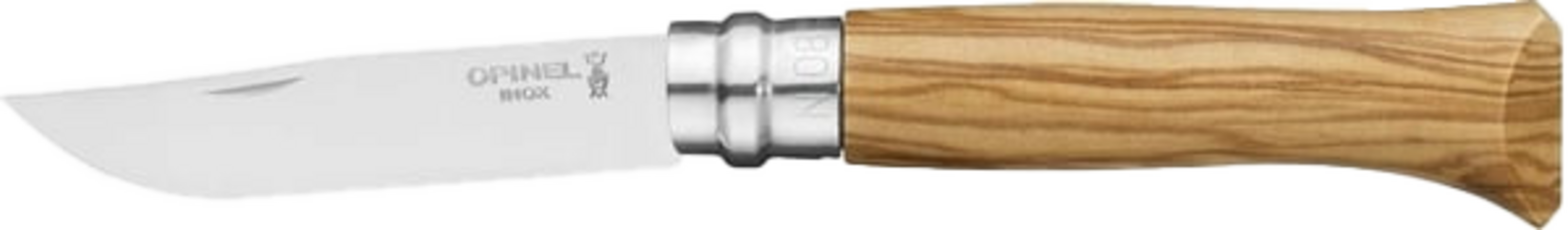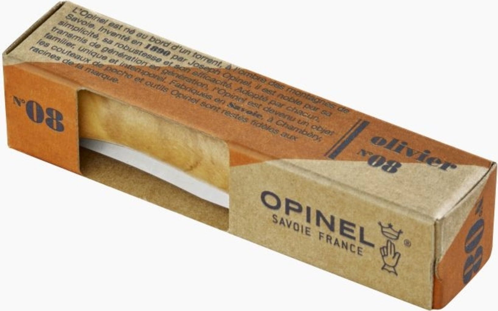 S 8,5 cm dlouhou a hladkou čepelí je N°08 klasikou mezi kapesními noži. Díky speciální slitině nerezové oceli je čepel velmi ostrá, odolná a snadno se udržuje. Čepel zároveň není citlivá na korozi. Maximální ochranu poskytuje patentovaný bezpečnostní kroužek Virobloc®, který umožňuje aretaci čepele v otevřené i zavřené poloze. Tvar rukojeti, který je pro Opinel charakteristický, nabízí optimální manipulaci.