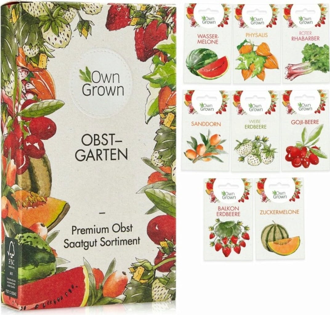 S touto pestrou sadou si přijdou na své všichni milovníci mlsání i ovoce. Celkem osm druhů ovoce se ukrývá v krásném balení a promění Vaši zahradu v šťavnatě sladký ráj plný lahodných pokušení. Na zadní straně každého sáčku naleznete tipy k výsevu, sklizni i inspiraci ke zpracování (DE). V závislosti na druhu je možné pěstování na balkoně nebo na slunném stanovišti ve volné půdě. Těšte se na aromatickou ovocnou zahradu plnou chutných dobrot.