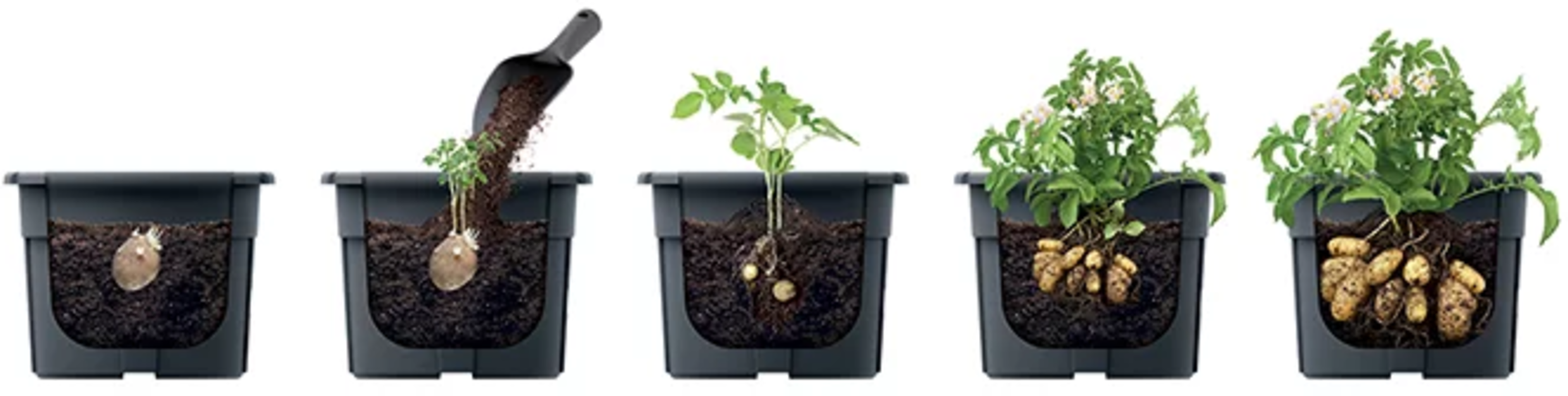 Na balkoně si můžete zcela jednoduše vypěstovat vlastní bio brambory - tento praktický pěstební květináč to umožňuje. Jeho chytrá konstrukce 2v1 usnadňuje pěstování brambor a zároveň Vám kdykoli umožní nahlédnout do aktuální fáze vývoje Vašich brambor. To je obzvlášť zajímavé nejen pro děti.