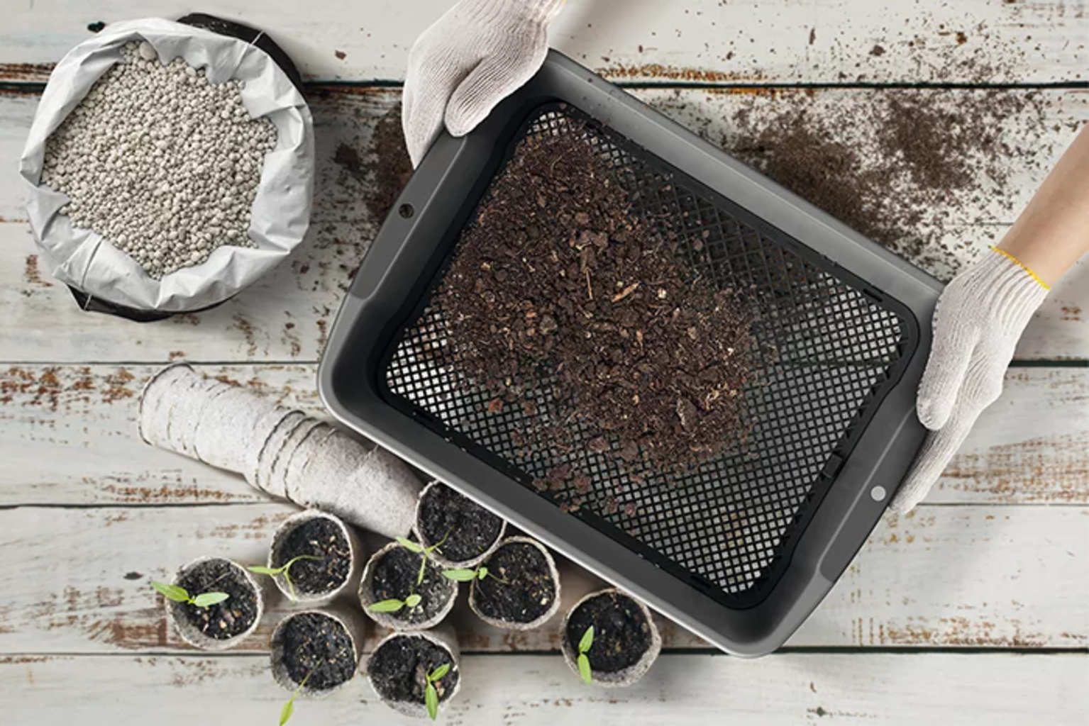 Toto síto je praktickým pomocníkem při práci na zahradě a je vhodné pro ruční prosévání zeminy, kompostu, písku, štěrku a kůry.