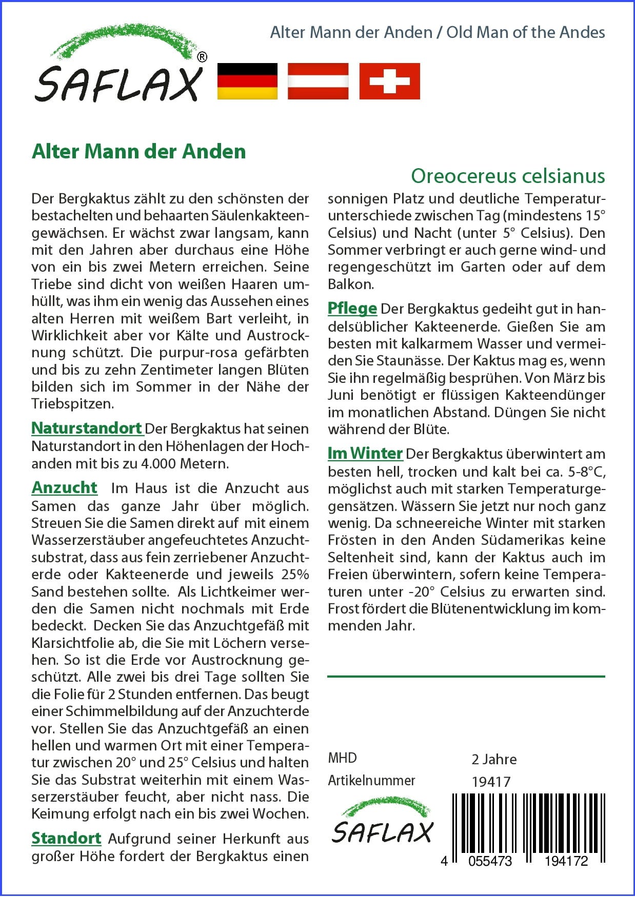 Tento ochlupený sloupovitý kaktus je v každém případě naprosto výjimečným doplňkem, který získal své jméno díky podobnosti s vousatým starým pánem. Toto ochlupení jej v zimě chrání před vysycháním a chladem. V létě vytváří krásné, purpurové květy.