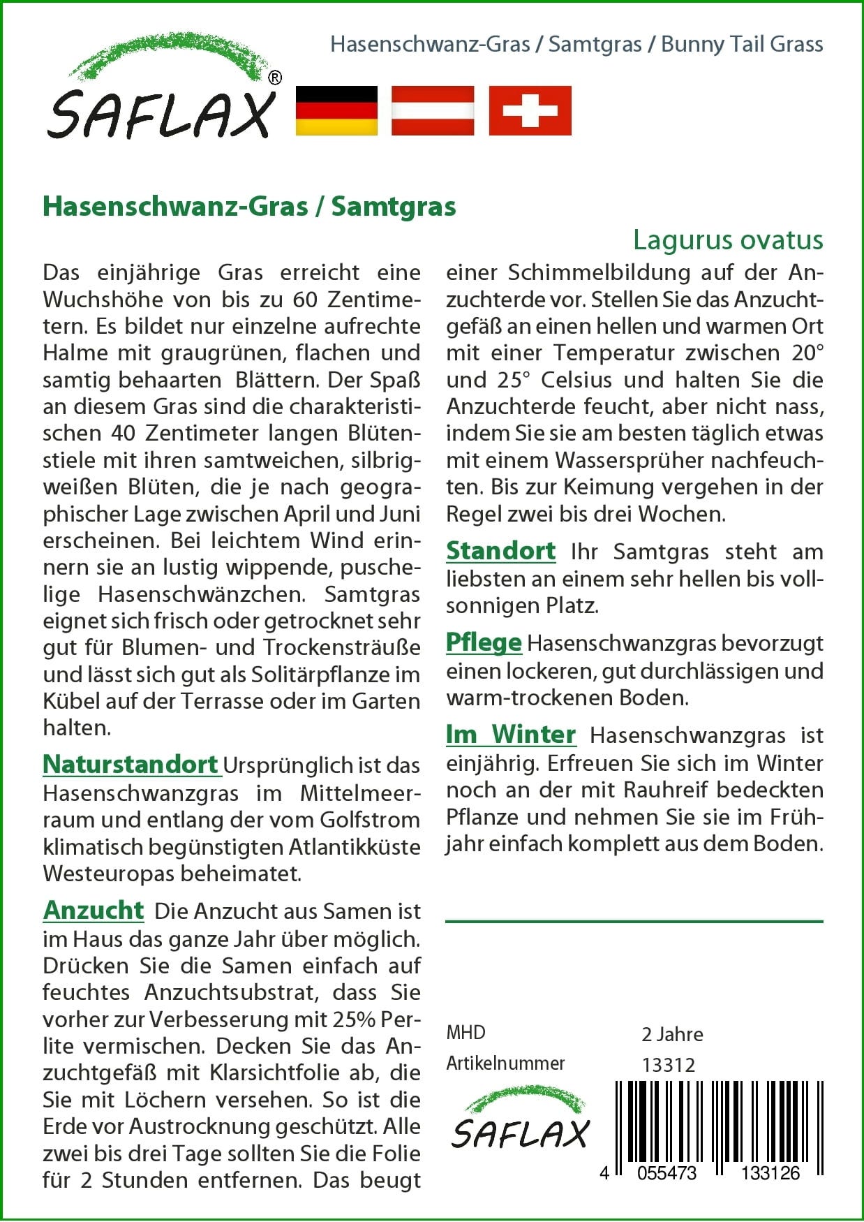 Tato půvabná jednoletá tráva nese své jméno díky stříbřitě bílým, sametově hebkým květům, které při houpání ve větru připomínají huňaté zaječí ocásky. Je nejen ozdobou zahrady, ale vypadá úchvatně také v čerstvých i sušených, s láskou sestavených kyticích.