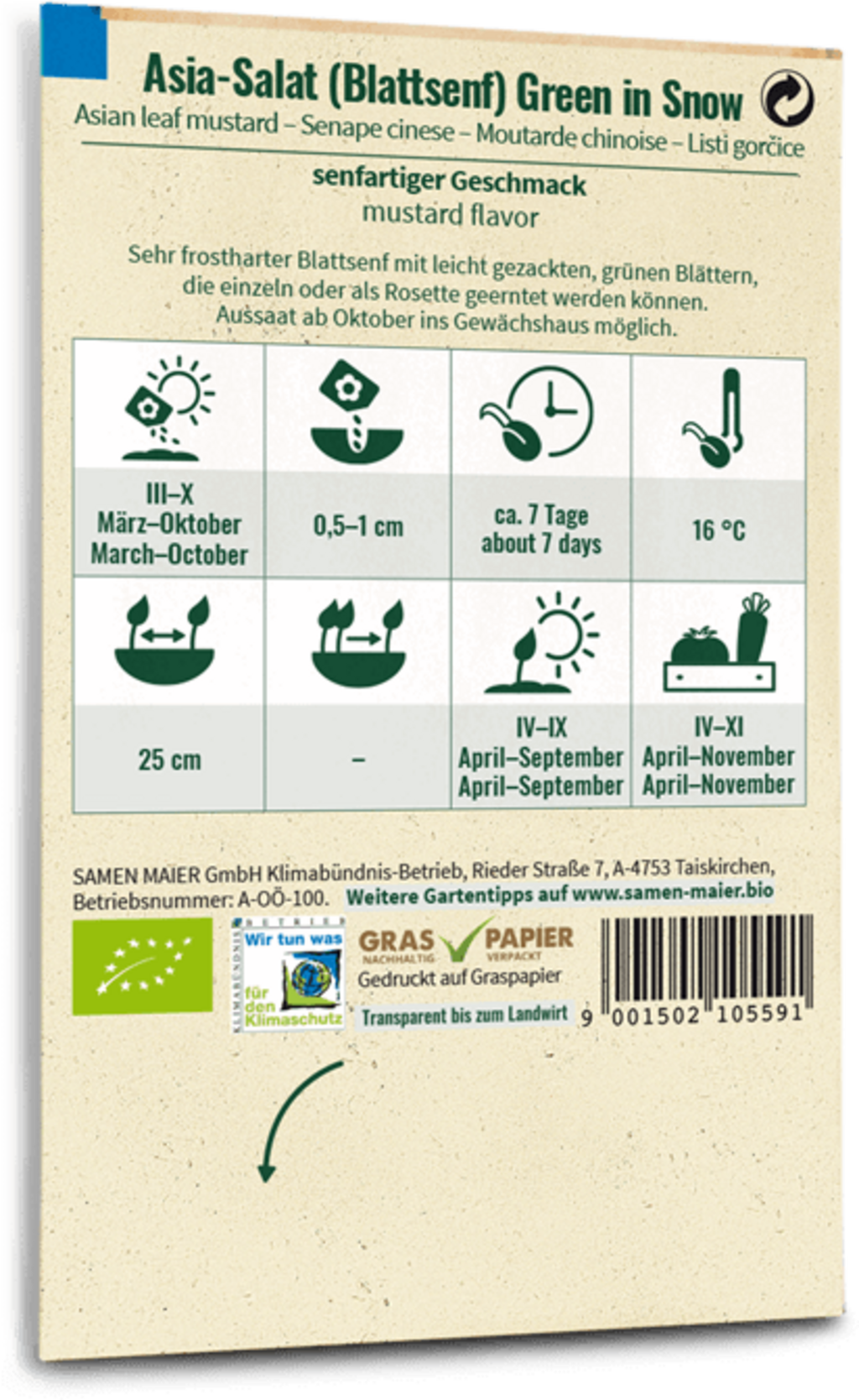 hodnocení pro Samen Maier Bio asijský salát „Green in Snow“ (čeština)