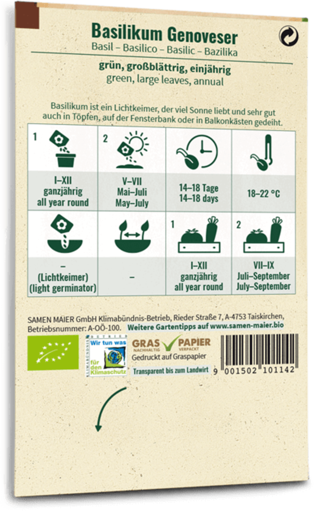 Samen Maier Bio bazalka „Genovese“, 1,20 g