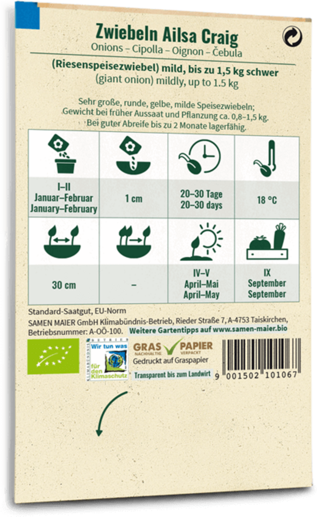 Samen Maier Bio cibule „Riesenspeisezwiebel Ailsa Craig“