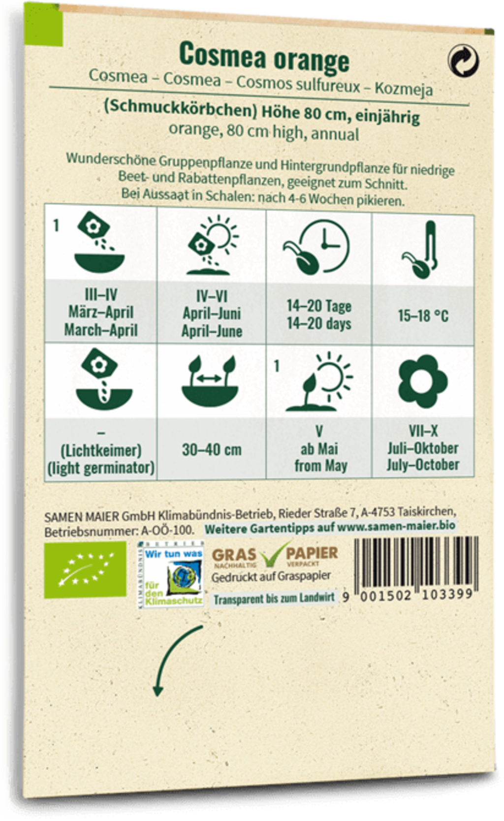 hodnocení pro Samen Maier Bio Cosmea - oranžová (čeština)