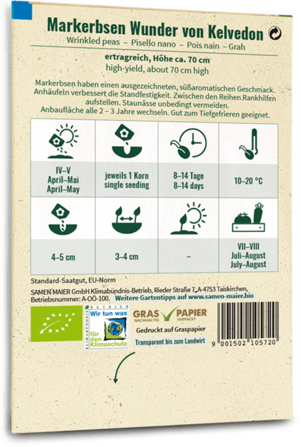 Samen Maier Bio cukrové hrášky „Wunder von Kelvedon“