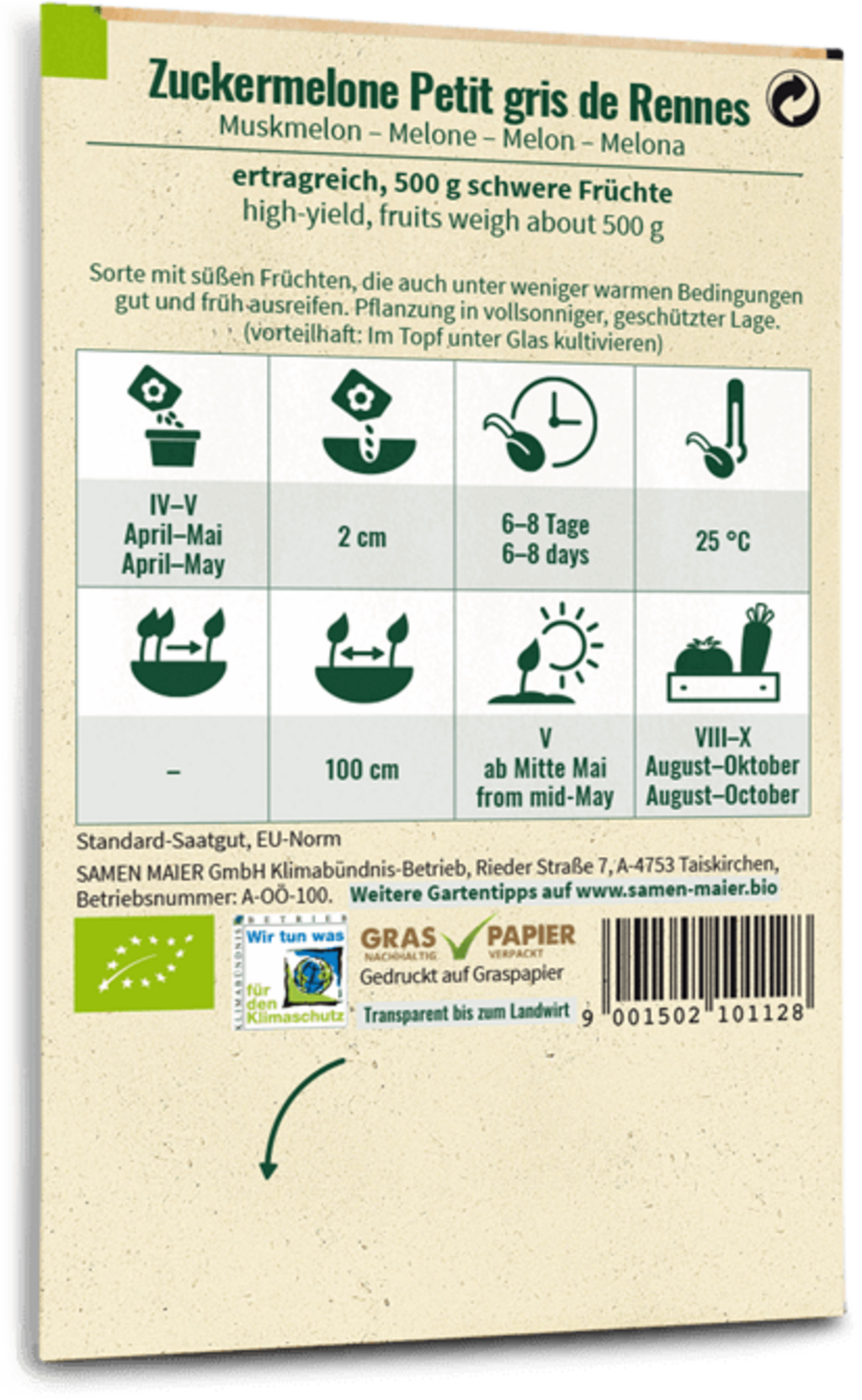 Samen Maier Bio cukrový meloun „Petit gris de Rennes“