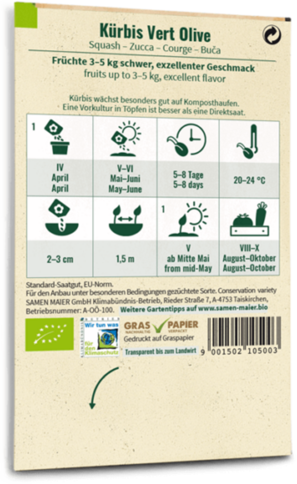 Samen Maier Bio dýně „Vert Olive“