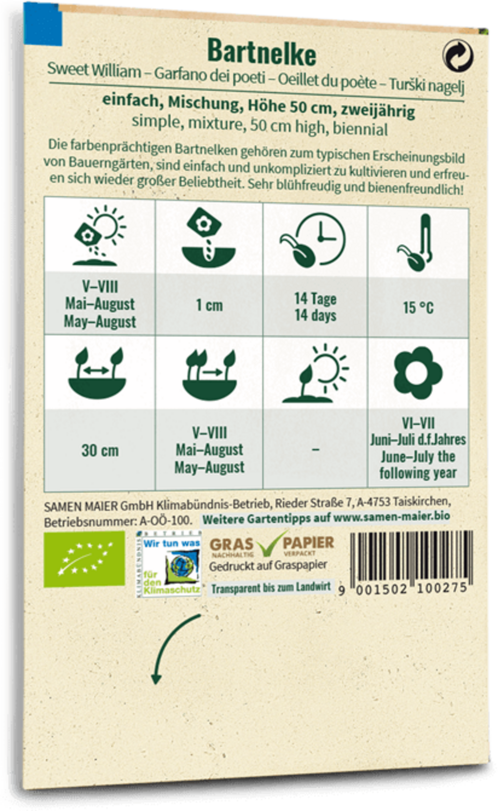 Samen Maier Bio hvozdík bradatý