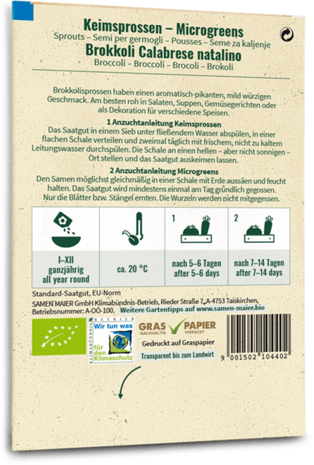 Samen Maier Bio klíčky / microgreens - brokolice „Calabrese natalino“