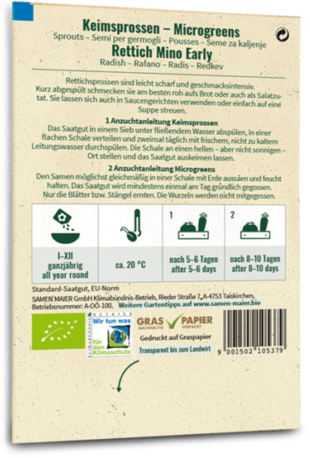 Samen Maier Bio klíčky / microgreens - ředkvička „Scarlet Champion“ 80,00 Kč