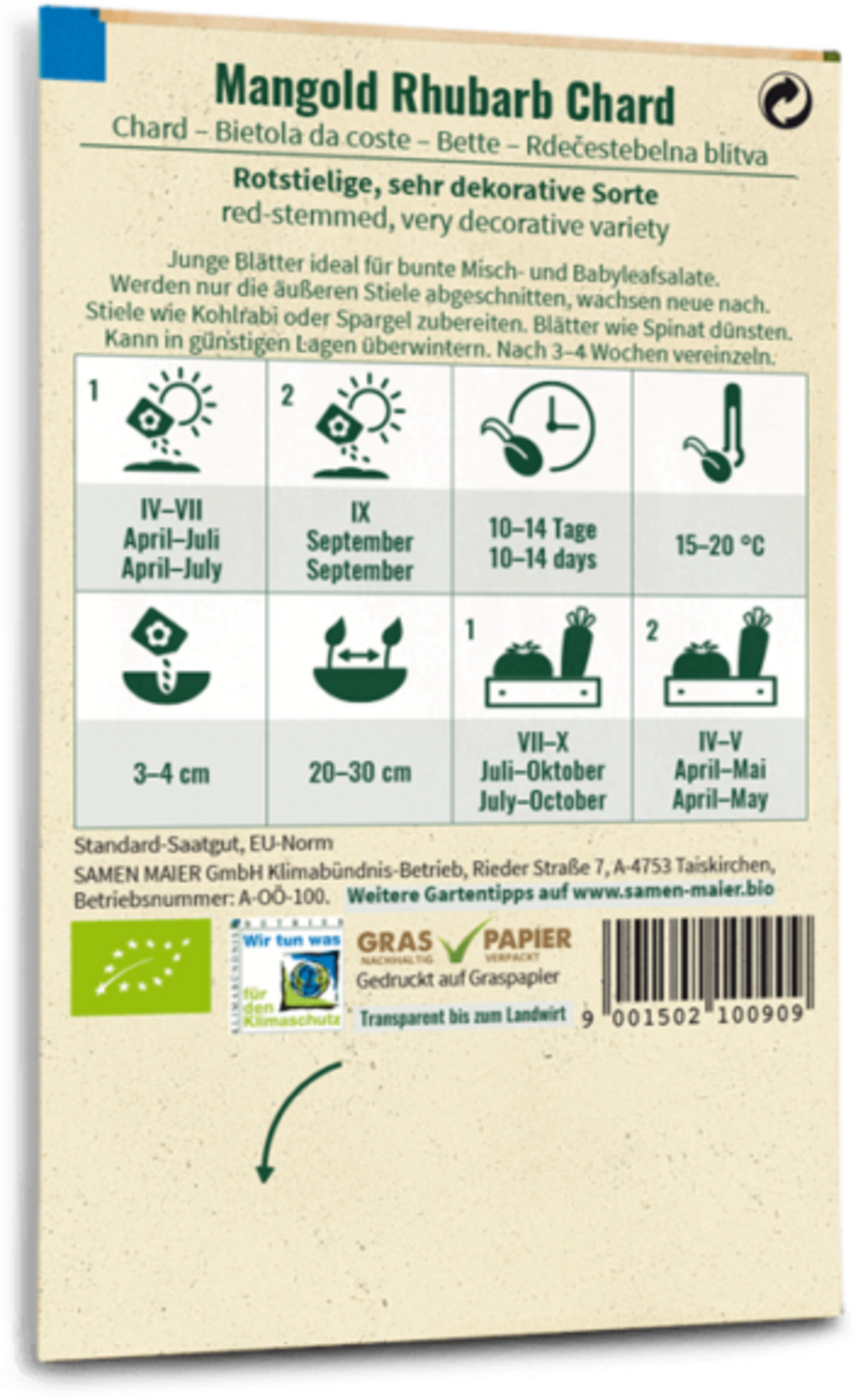 Samen Maier Bio mangold „Rhubarb Chard“
