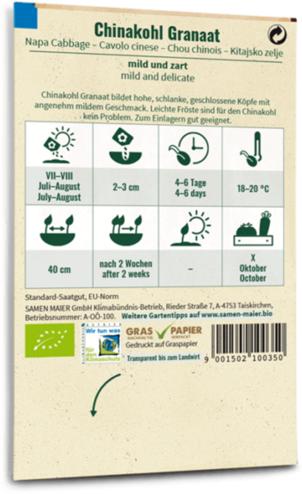 Samen Maier Bio pekingské zelí „Granaat“