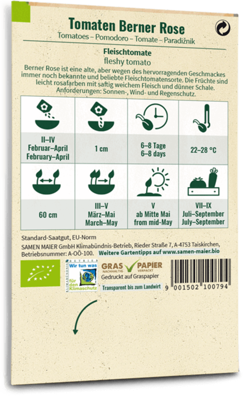 Samen Maier Bio rajče „Berner Rose“ (masité rajče)