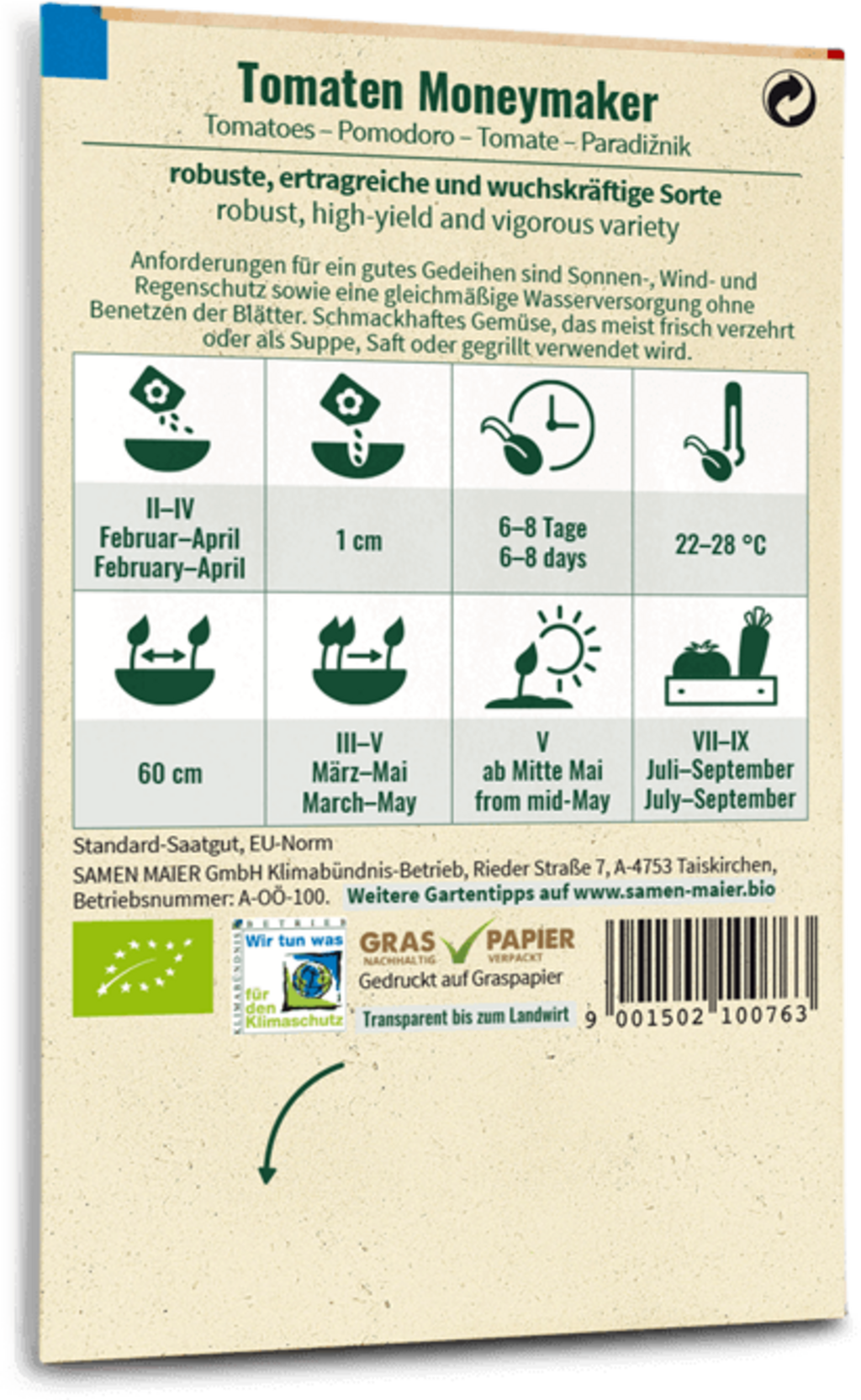 Samen Maier Bio rajče „Moneymaker“