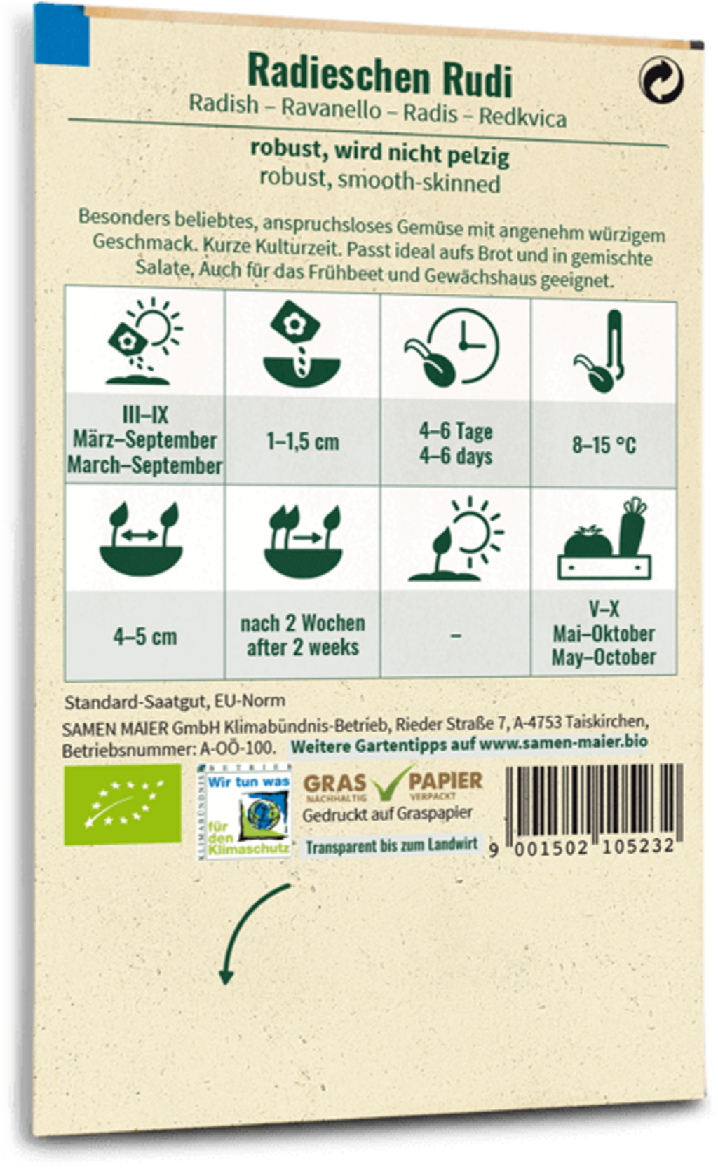 hodnocení pro Samen Maier Bio ředkvička „Rudi“ (čeština)