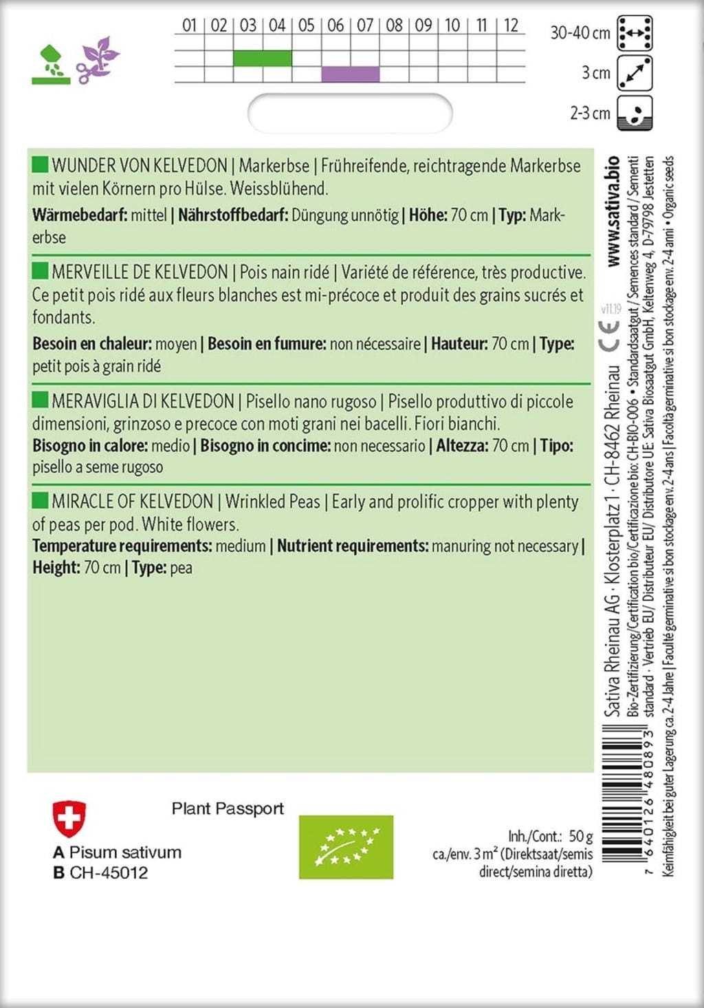 Sativa Bio hrách dřeňový "Wunder von Kelvedon"