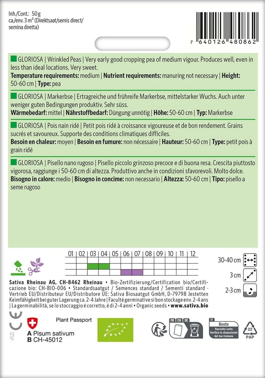 Sativa Bio hrách, Gloriosa