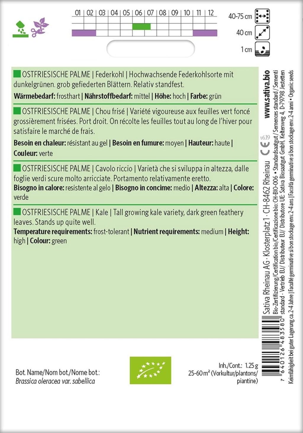 Sativa Bio kadeřávek / kadeřavá kapusta "Ostfriesische Palme"