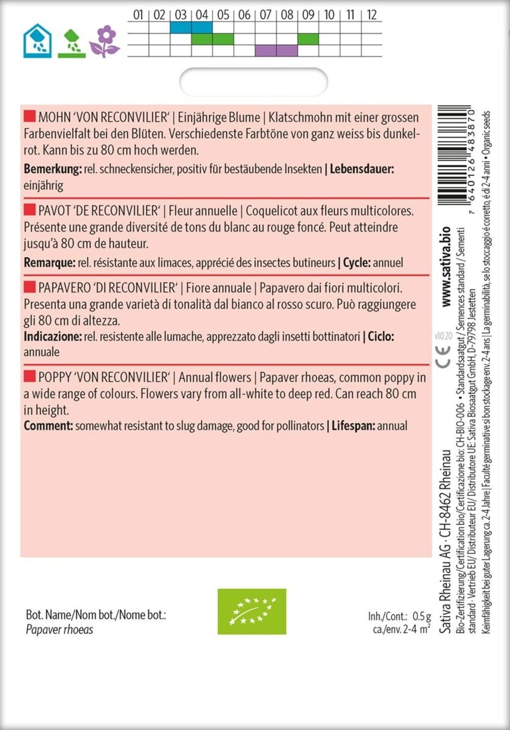 Sativa Bio letnička "Mák 'Von Reconvilier'"
