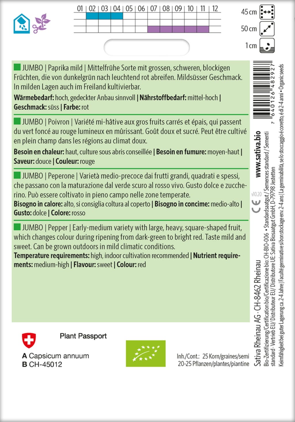 hodnocení pro Sativa Bio paprika jemná "Jumbo" (čeština)