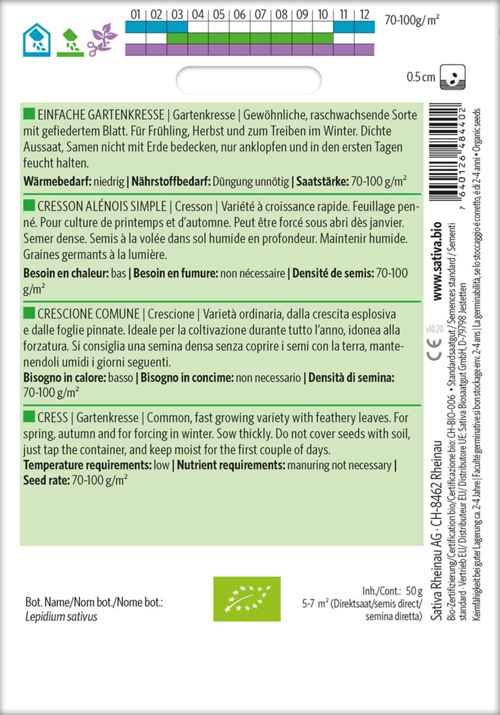 Sativa Bio řeřicha zahradní "Einfache Gartenkresse"