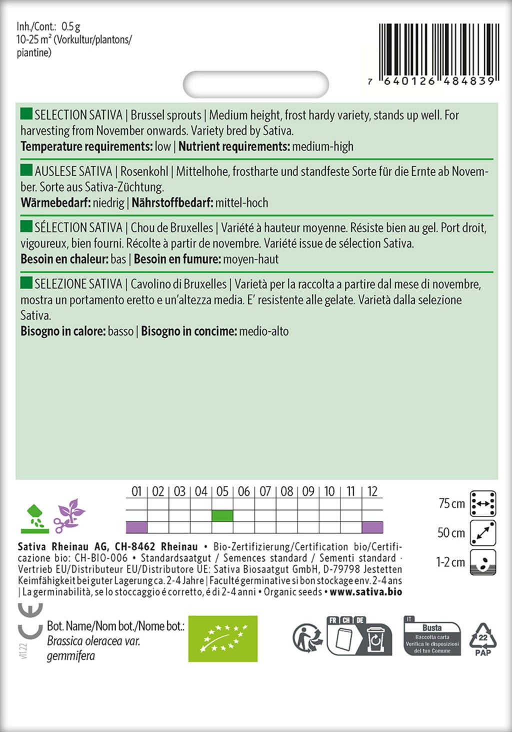 Sativa Bio růžičková kapusta "Auslese Sativa"