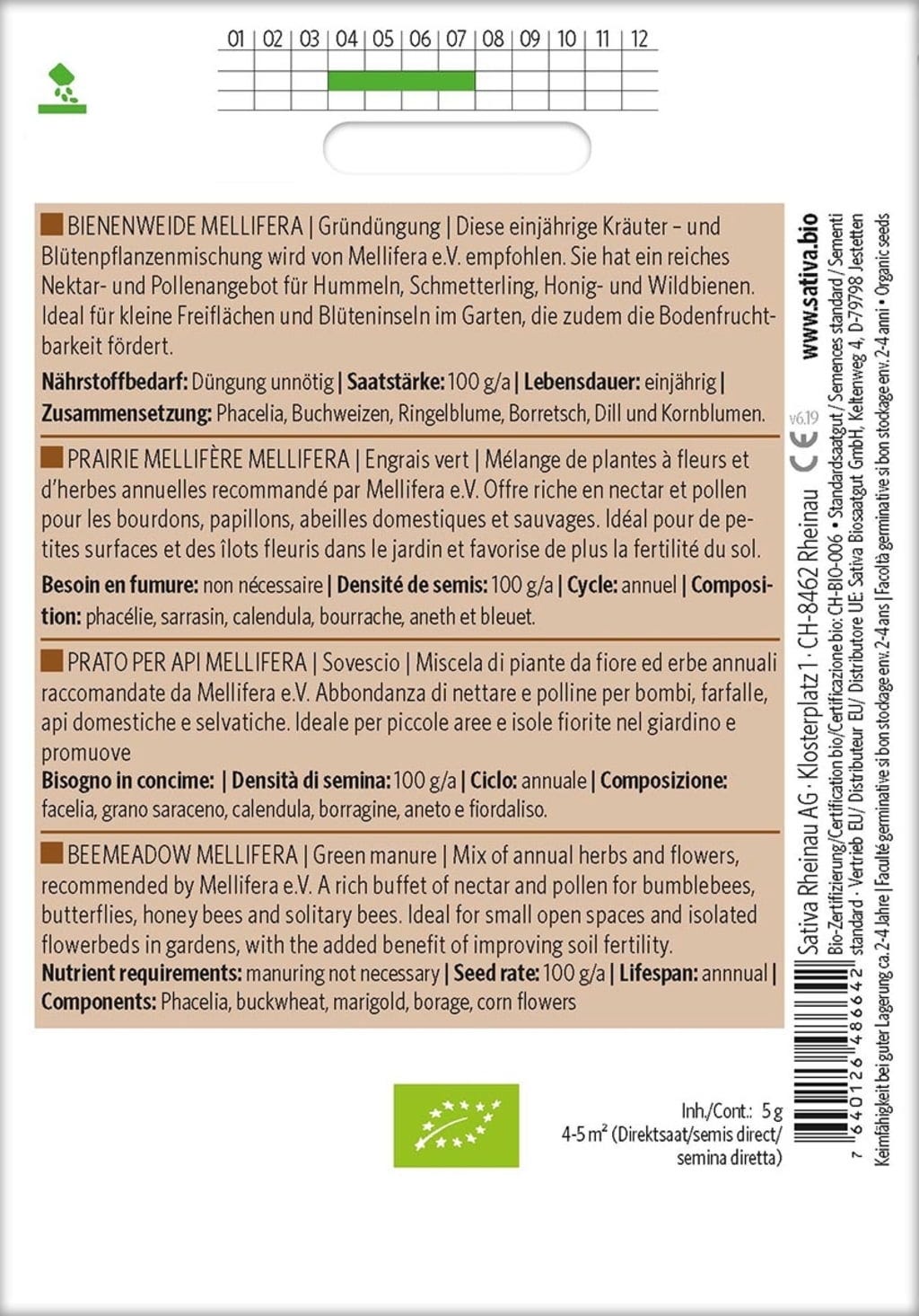 Sativa Bio zelené hnojení "Bienenweide Mellifera"