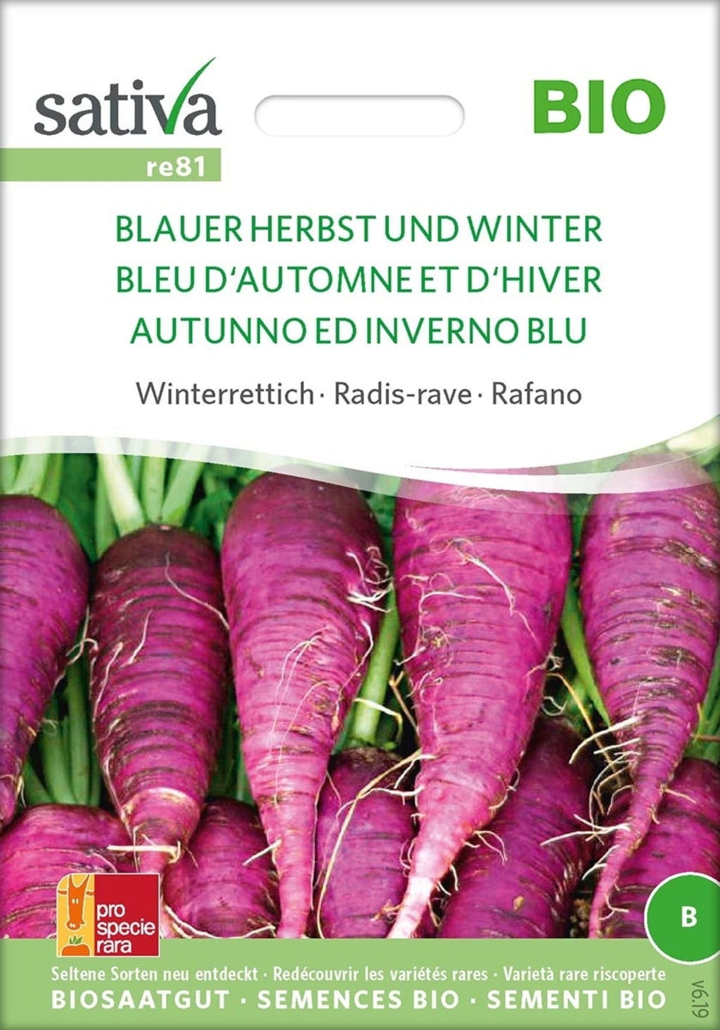 Tato podlouhlá podzimní ředkev, která kdysi upadla v zapomnění, nyní slaví svůj návrat. Zdravá zelenina s fialovou slupkou a bílou dužinou chutná čerstvá znamenitě a vyznačuje se dobrou skladovatelností.