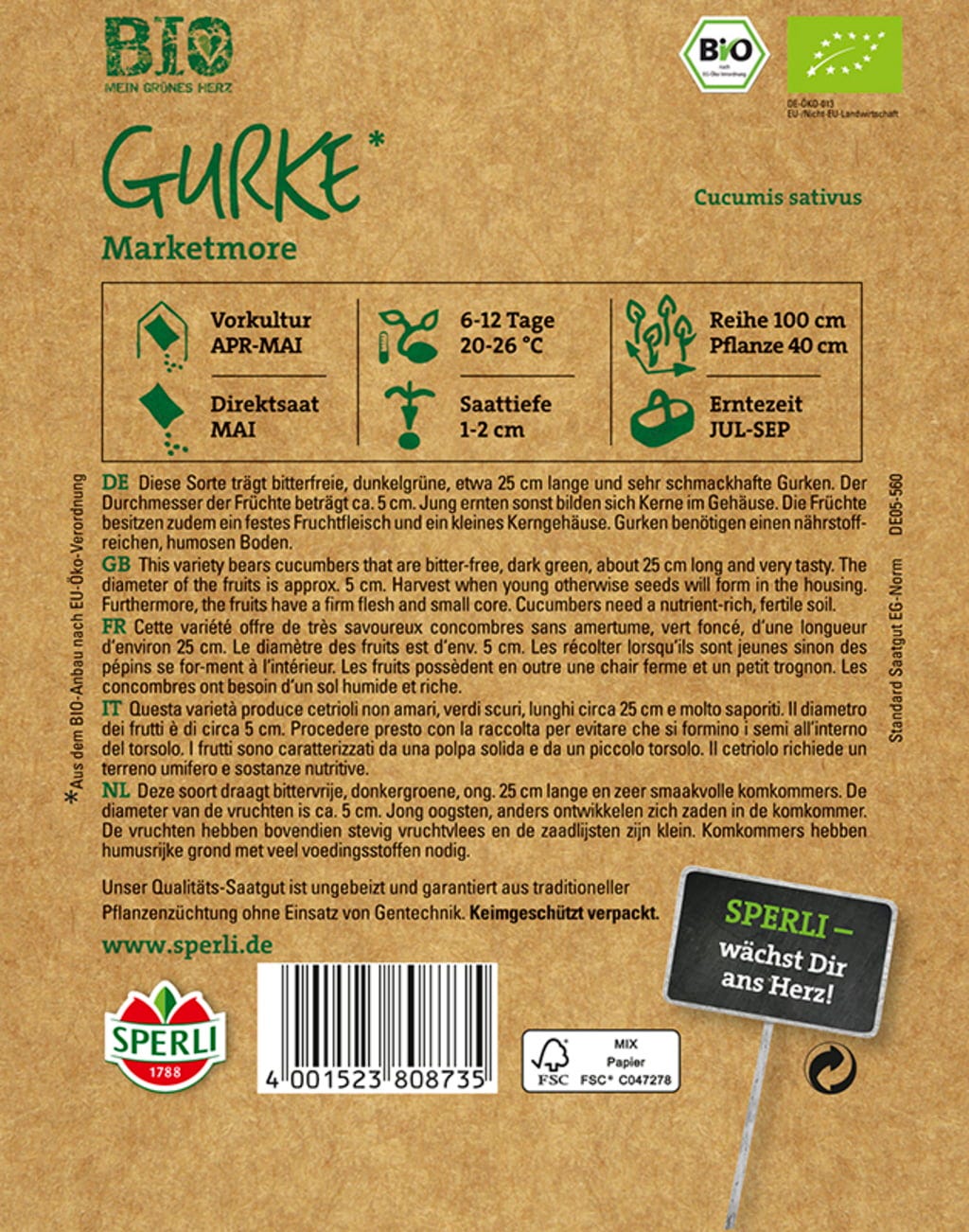 Sperli Bio okurka Marketmore