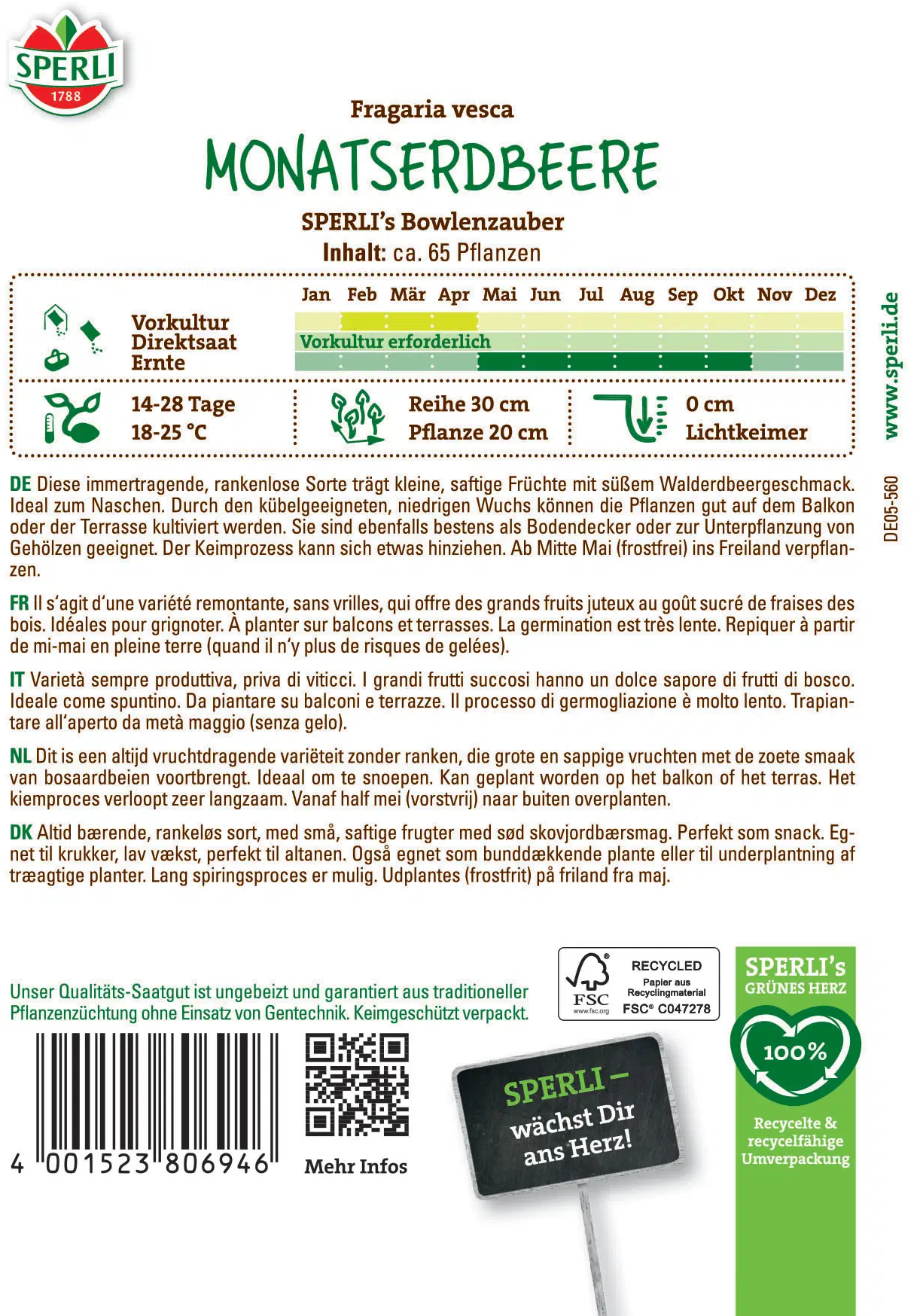 Měsíční jahodník 'Bowlenzauber' okouzlí svými šťavnatými červenými plody přímo z vlastní zahrady nebo balkonu. Ideální pro mlsouny, kteří hledají nenáročnou, snadno pěstovatelnou a dekorativní rostlinu přinášející radost po několik let.
