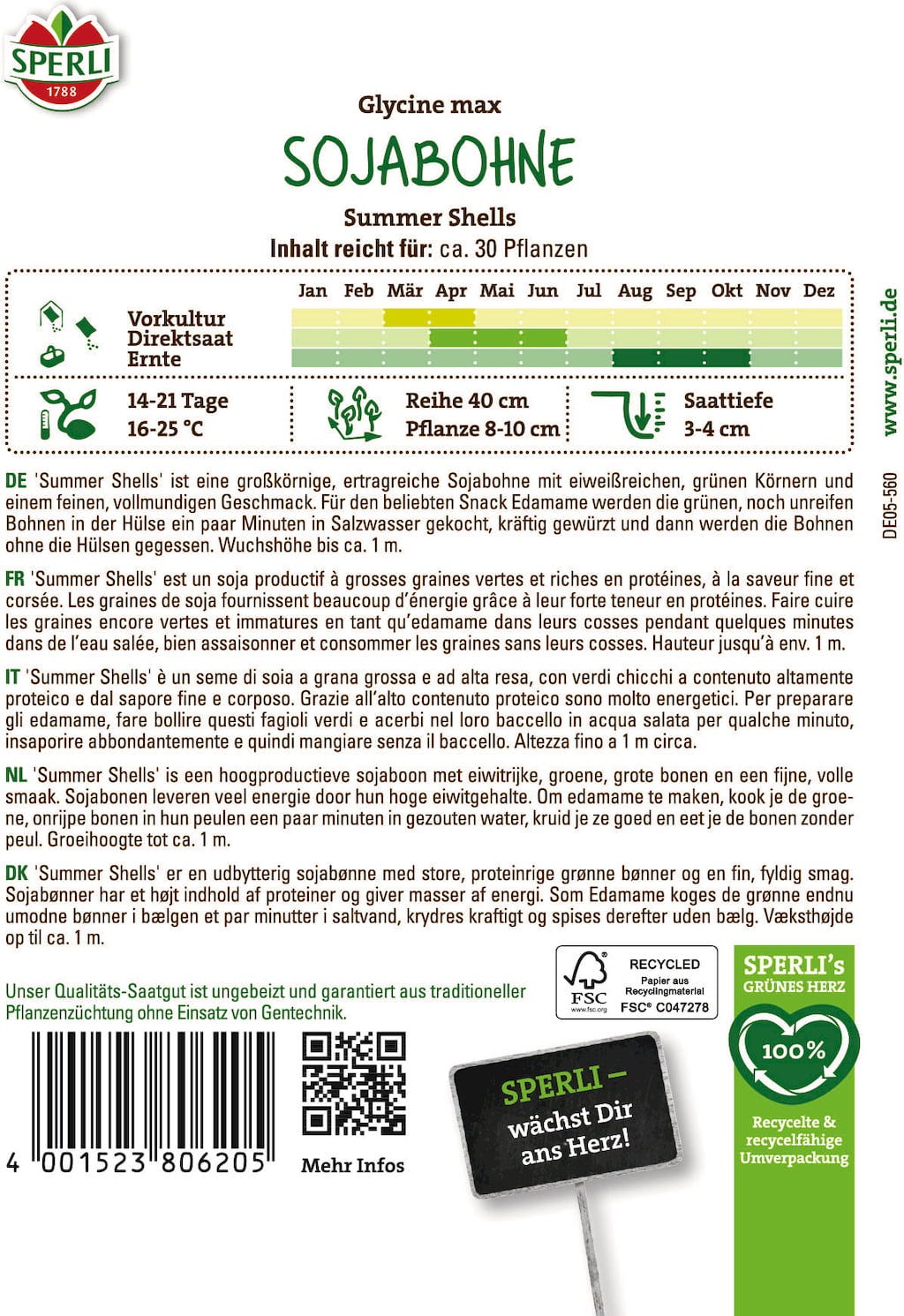Velkozrnná sója „Summer Shells“ zaujme plnou chutí. Je oblíbenou volbou pro klasický snack edamame: mladé boby stačí krátce povařit v osolené vodě, ochutit a jemná zrna si vychutnat přímo z lusku.