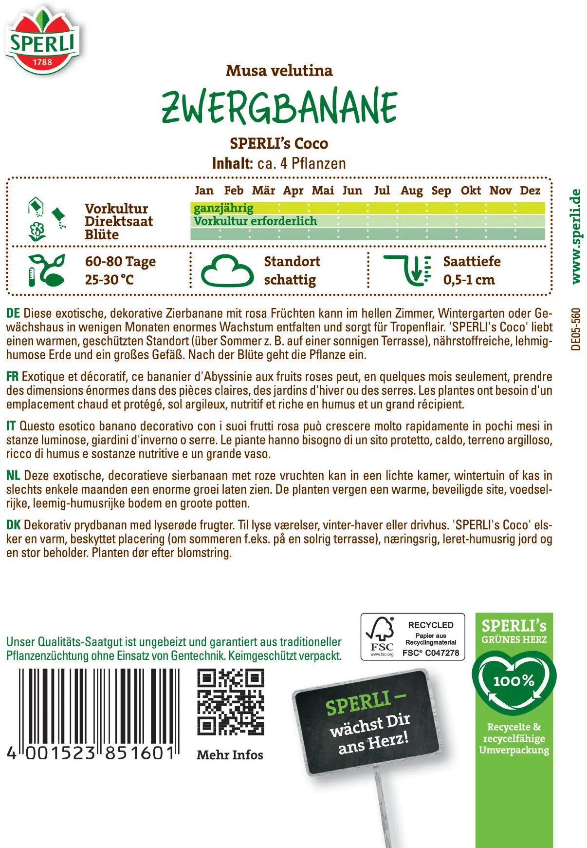 Tuto zakrslou banánovou rostlinu můžete snadno pěstovat doma - a to tropickou rychlostí! Rostlina se vyznačuje impozantními vějířovitými listy a silným kmenem. Lze ji pěstovat jako pokojovou rostlinu nebo v dospělém stadiu jako nádobovou rostlinu.