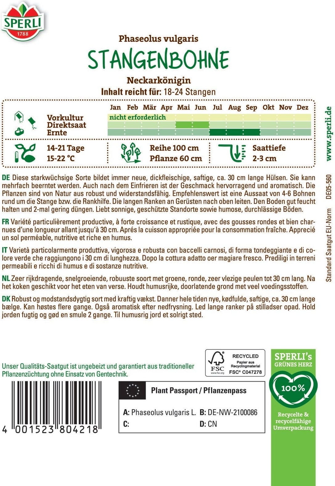 Sperli Tyčkový fazol Neckarkönigin