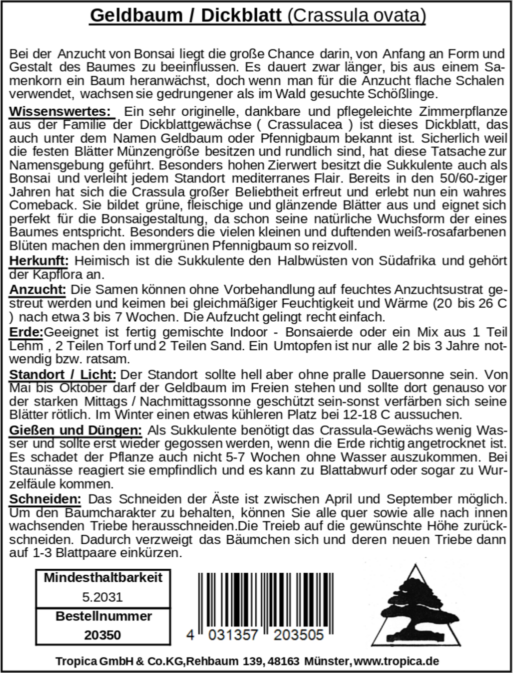 TROPICA Tlustice - pokojová bonsaj, 100 zrn