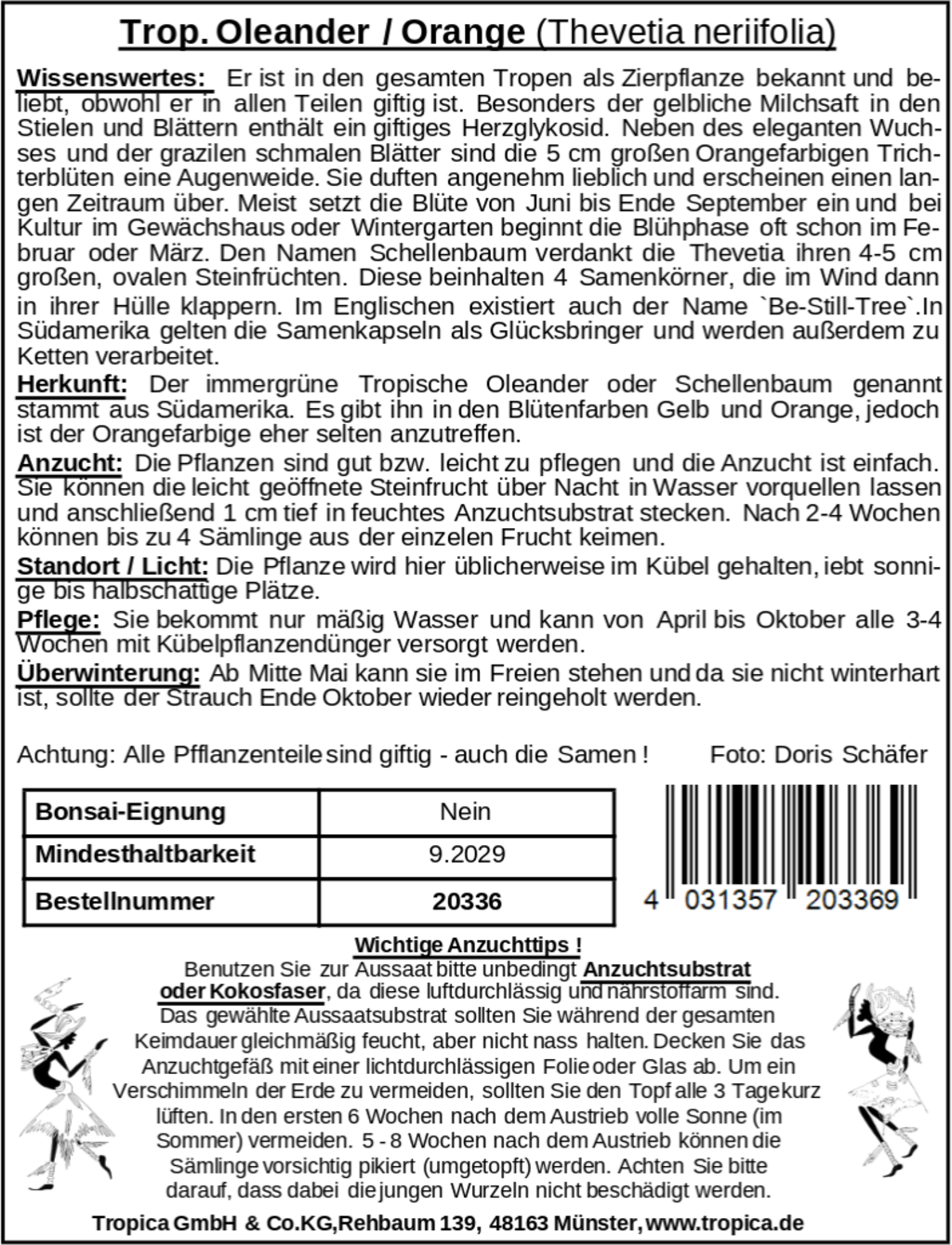 Pozor: Všechny části rostliny jsou vysoce jedovaté - včetně semen.