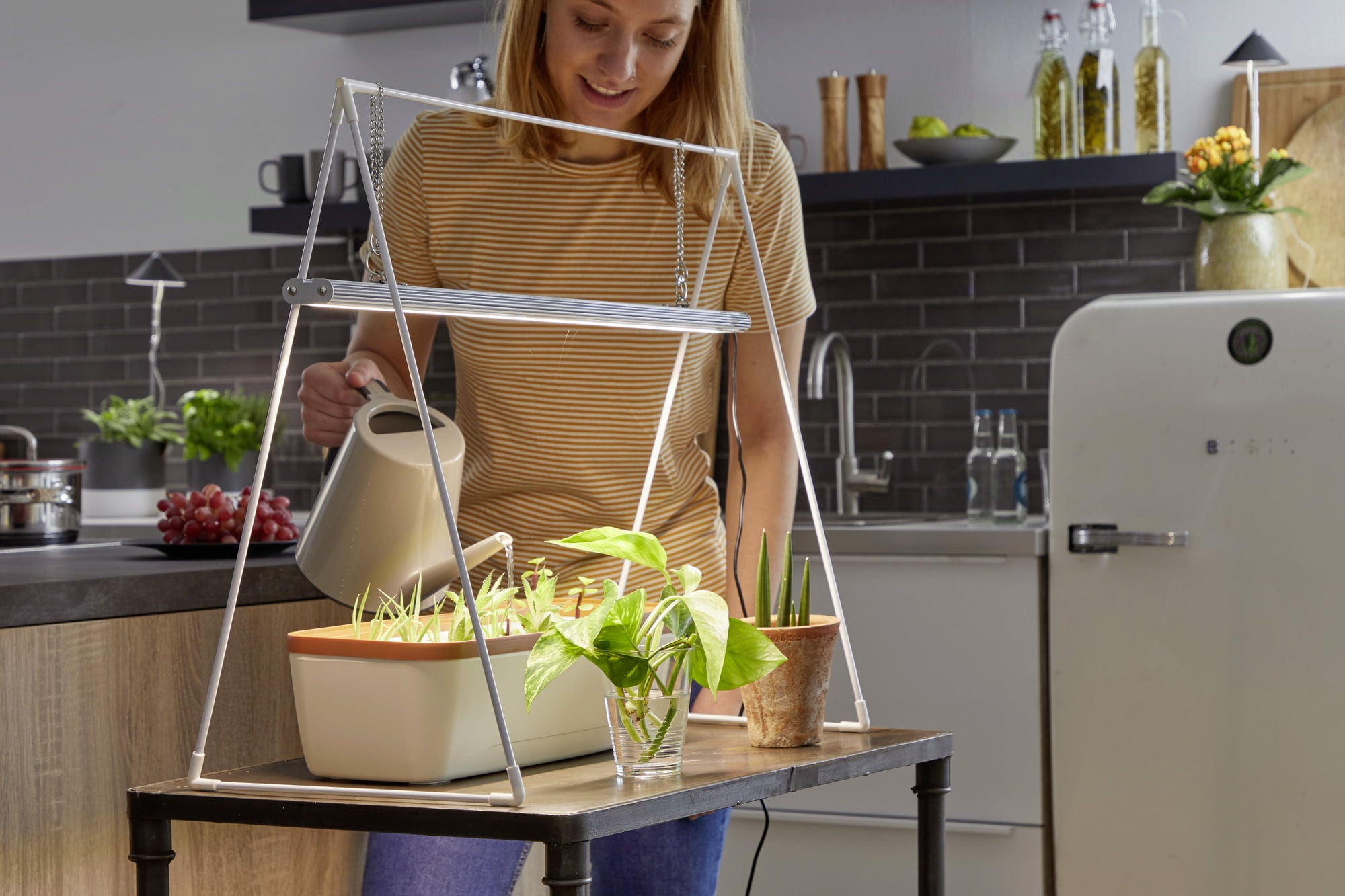 Praktická předpěstovací lampa „GrowLight Duo“ je vybavena bílými a červenými LED, aby optimálně osvětlila mladé rostlinky. Díky zabudovanému regulátoru intenzity světla lze jas přizpůsobit fázi růstu. Světelný panel lze připevnit na hliníkový stativ, který je součástí sady; výšku k rostlinám lze snadno a pohodlně nastavit pomocí řetězů. Kombinace obou barev světla přispívá dlouhodobě ke zdravému růstu kořenů, rostlin i květů - pro silné rostliny a spokojeného zahradníka.