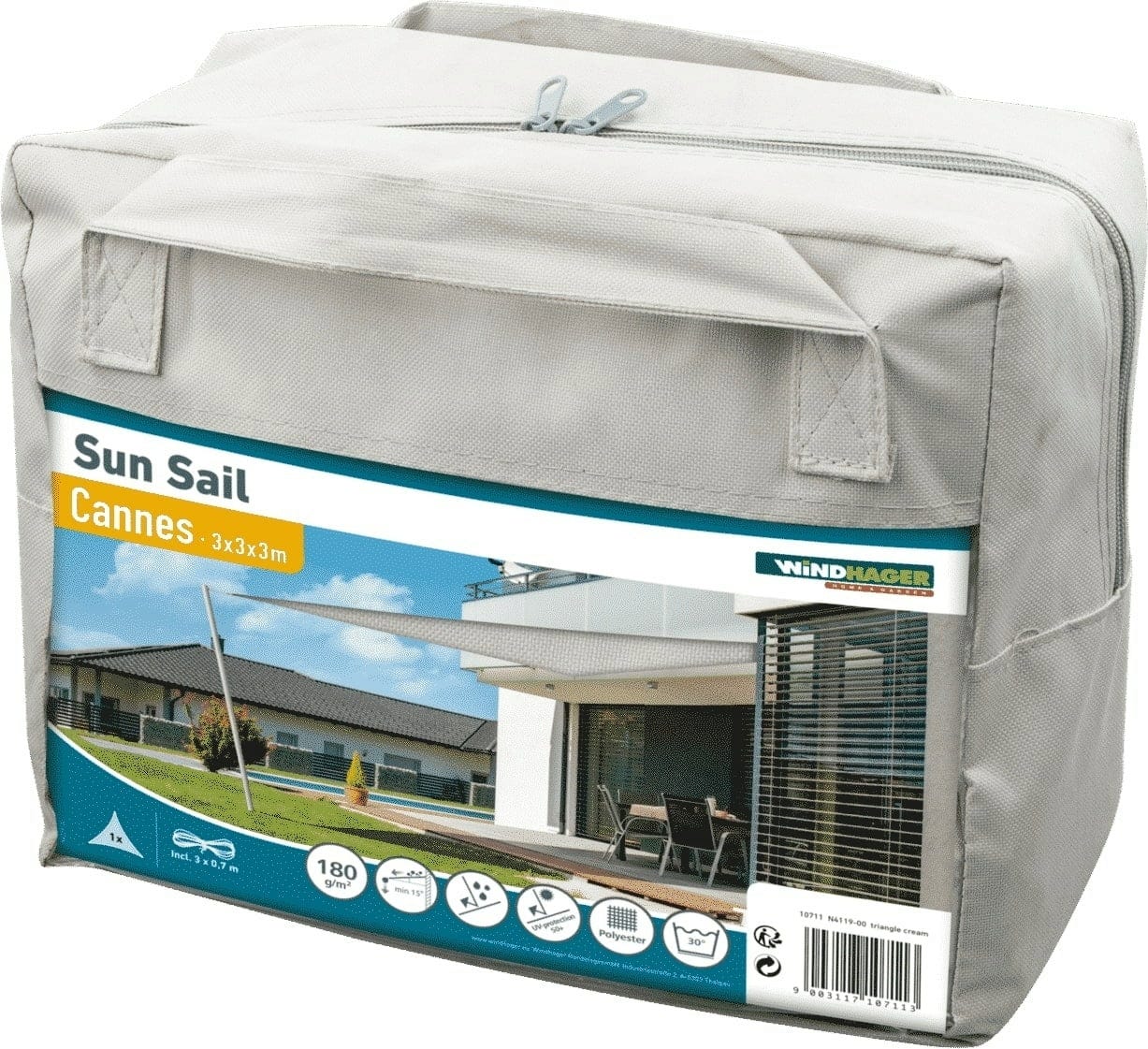 Windhager Stínící plachta SunSail CANNES trojúhelník 3x3x3 m, cream-grey